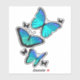 sticker à thème nature avec aqua lumineux et papillons morpho bleu turquoise en vol
