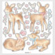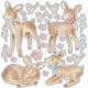 Un ensemble d'autocollants pour bébé ou enfant avec cerf de bébé aux fleurs et aux oiseaux pétales roses et bleus.