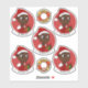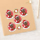 Ensemble de sept autocollants en vinyle coupé avec l'illustration d'un joli petit garçon afro-américain souriant joyeux ou d'une fille, vêtu de vêtements de Noël et portant un casquette du Père Noël rouge et tenant un cadeau, sur un arrière - plan rouge ; cinq autocollants du bébé et deux autocollants avec une couronne de Noël ; avec un modèle de texte personnalisable pour votre nom ou message