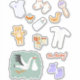 De nouveaux autocollants pour bébé, avec des vêtements pour bébé, des jouets et plus. Amusant et neutre pour un bébé garçon ou une fille.