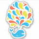 Un autocollant de baleine mignonne avec une illustration colorée d'une baleine de dessin animé souriante éclaboussant des tourbillons bleu, jaune et orange vifs. Cet autocollant mignon est parfait pour toutes les filles amoureuses de la baleine qui s'avèrent aussi aimer les couleurs amusantes et vives.