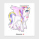 Brochure en vinyle / autocollant de contour avec l'image d'une licorne aux grands yeux bleus, ailes roses et crinière arc-en-ciel et queue. Kawaii mignon.