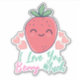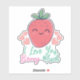 Un drôle de fraise de dessin animé avec le sourire le plus mignon, un visage rouge et des feuilles verts sur le dessus avec le coeur d'amour rose. Sous la baie en rose pastel et texte vert sont les mots I Love you Berry Many. Idéal pour les amateurs de baies et de puns.
