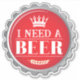 L'autocollant humoristique d'un casquette de bouteille de bière rouge et l'expression J'ai besoin d'une bière !