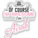 Bien sûr, je suis génial, je suis Airah en noir et rose mélangé sans et en lettres de police cursive avec des embellissements de défilement blanc et surmonté d'une couronne.