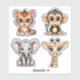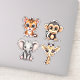 Sticker Big Eyed Kawaii Style Jungle Animal Set étanche
