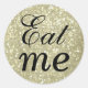 Ce sticker super mignon "mangez-moi", fait un grand accessoire pour tout apéritif, dessert ou service alimentaire. L'arrière - plan de cet autocollant est une illustration photo et aucune parties scintillant réelle n'est utilisée.