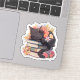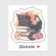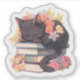 Sticker Black Cat Sleeping on Books Sticker, Spring Flowe