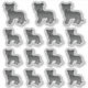 Illustration originale de Destei d'une jolie robe noire de couleur anglaise Staffordshire Bull Terrier / Chien de race Staffie. Le dessin du chien est placé 15 fois sur la feuille. Les trois premiers sont légèrement plus grands que les 12 autres.