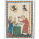 Illustration tirée du manuscrit médiéval du Codex Manesse du XIVe siècle. Blacksmith forge un casque, tandis que son assistant se tient à proximité. Un grand cadeau pour quelqu'un qui s'intéresse à l'histoire et à l'art du moyen-âge.
