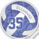 Cet autocollant de volley-ball bleu et blanc présente un motif kaléidoscopique floral mélangé avec les panneaux bleus du volleyball et un motif tourbillon abstrait artistique mélangé avec les panneaux blancs - son nom numéro de maillot sont personnalisables - par katz_d_zynes