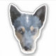 Bleu Heeler / Autocollant de chien de bétail australien avec dessin à la main par ArtistsQuest. Cette image a été inspirée par un beau chien nommé Achille. (Killies). Plein de sang, il a été secouru d'un propriétaire qui a tenté de lui tirer dessus à plusieurs reprises. Heureusement, il a été manqué. Après que son nouveau propriétaire eut subi une blessure à la tête, Killies apprit par lui-même à l'alerter chaque fois qu'elle allait s'emparer. Il sauterait sur sa poitrine la nuit si elle avait une crise cardiaque et arrêtait de respirer. Purement un chien miraculeux envoyé du ciel, il est maintenant très heureux, et a des conversations animées avec son propriétaire aimant.