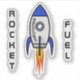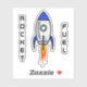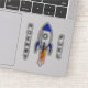 Cette feuille d'autocollants vinyle a une fusée bleue et grise qui peut être personnalisée en ajoutant un nom. Le texte ci-joint ROCKET CARBURANT peut également être customisé.