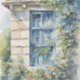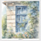 A charming watercolor scene captures the soft elegance of a cottage window framed by blooming vines and sunlit stone. Shades of dusty blue and gentle cream create a nostalgic, slow-living mood, while delicate blush and periwinkle flowers spill over the sill in a natural cascade. The weathered wooden shutters and climbing greenery suggest a quiet moment in a countryside garden, rich with warmth and stillness. This artwork embodies a romantic cottagecore spirit, blending rustic architecture with whimsical floral details. Soft shadows and painterly textures evoke a sun-drenched afternoon, perfect for lovers of vintage charm and cozy botanical scenes. AI generated artwork.