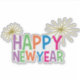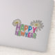 sticker vinyle 6" x 6" sur mesure avec une image de "Bonne Année" imprimée en lettres-blocs multicolores et deux feux d'artifice en or. Voir autocollant carré correspondant, confettis, étiquette et papier d'emballage. Consultez la collection entière de Stickers du Nouvel An dans la section VACANCES.
