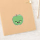 Une adorable pomme verte kawaii aux yeux noirs fermés et un grand sourire joyeux et des joues rouges roses.