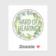 This sticker features the slogan 'Hard of Hearing', surrounded by a green wreath of eucalyptus leaves, on a pale green background. You can edit the text as needed.⭐ For more deafness accessories, visit my store Zazzle.com/Elder_Vitality ⭐ For custom orders, message me on Zazzle