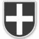 Notre Bouclier de Saint-Piran est basé sur le Drapeau de Cornouailles de Saint-Piran (v.q.). Il est blasonné d'une croix blanche sur un terrain noir de sable. Crédit image (Bouclier de Saint Piran) : Saints_Amany.