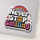 Cet autocollant ensoleillé rayonne le bonheur avec l'expression "brillant brillant" en lettres audacieuses et amicales. Au coeur du design se trouve un soleil rayonnant de dessins animés avec un doux sourire et des joues rougissantes, entourés de rayons de lumière, d'étincelles et de petits coeurs. La palette de couleurs chaudes (jaunes, oranges et pêche douce) ajoute à l'atmosphère joyeuse et énergisante. Parfait pour décorer des journaux, des miroirs, des ordinateurs portables ou n'importe où un peu de soleil est nécessaire, cet autocollant est un petit coup de pouce pour embrasser votre lumière et la laisser briller chaque jour.