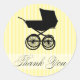 Parfait pour les faveurs aux baby showers ou les notes de remerciement! Un arrière - plan rayé jaune avec buggy pour bébé noir.