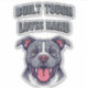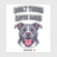 Bold pit bull artwork for proud dog parents who love strong, loyal dogs. Featuring a powerful bully-breed illustration with stone-look lettering. This graphic is perfect for pit bull fans, and anyone who knows their pup is built tough! Show off your love for big-hearted bullies with this fun sticker. Multiple sizes available. Please note, if selecting a transparent sticker, it looks best when applied on a lighter colored base item.