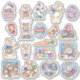 Une variété de lapins de Pâques et des autocollants d'oeufs.