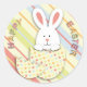 Bunny de Pâques regardant à partir de rayures et d'empreintes de points.