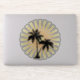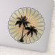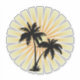 Art graphique d'une silhouette de 2 palmiers avec soleil derrière