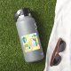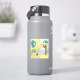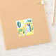 Cet autocollant présente une jolie scène de jardin de cactus qui a été inspiré d'une route de Père Noël Fe, Nouveau-Mexique à Phoenix, Arizona. Le paysage désertique présente des cactus saguaro, des plantes de cactus en pots et des succulents le long d'un mur de stuc jaune. Une porte mène aux collines violettes et roses et au coucher du soleil.