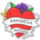 Graffiti personnalisé ou tatouage avec un coeur de dessin animé et fleurs avec des noms de couple personnalisés. Idéal pour la Saint-Valentin ou un anniversaire.