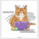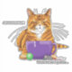 Un mignon chat tabby orange assis devant une tasse de café violet dans un arrière - plan de vert
