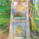 Les marqueurs Camino Primitivo de Santiago signalent un carrefour entre le sentier et le monastère Obona