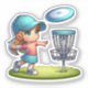 stickers de golf sur disque avec un joli dessin animé d'une petite fille jouant au golf sur disque.