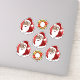 Ensemble de sept autocollants en vinyle coupé avec l'illustration d'un joyeux père Noël afro-noir souriant avec un casquette rouge, sur un arrière - plan rouge, cinq autocollants de Père Noël et deux autocollants avec une couronne de Noël, avec un modèle texte personnalisable pour votre nom ou message