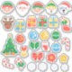 Autocollants de Noël multicolores avec père Noël, rennes, elfes, bonhomme de neige, ours polaire, cadeaux, arcs rouges et verts, décorations, sucres de canne, chaussettes rouges, etc.