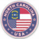 Design de Caroline du Nord avec drapeau de Caroline du Nord et drapeau des États-Unis, forme arrondie. autocollant de voiture de Caroline du Nord, autocollant de bagages de Caroline du Nord, autocollant de voyage de Caroline du Nord,
