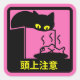 STICKER CARRÉ ネコ頭上注意ステッカー