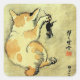 Sticker Carré 猫 と 鼠, 暁 斎 Chat et souris, Kyōsai, Ukiyo-e