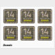 Sticker Carré 14e anniversaire : numéro floral, Faux Wood Look,