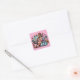Années 1960 Hippie fille poussin signe de paix doigts art couleur illustration carré rose feuille autocollants