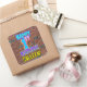 Ce design amusant autocollant carré d'anniversaire comporte le message "HAPPY 1ST BANTHDAY", avec un style animé, coloré, urbain et inspiré du graffiti, avec un nom de destinataire personnalisé. L'arrière - plan est décoré d'un motif d'inspiration murale en brique. Des autocollants dynamiques, amusants et personnalisés comme celui-ci peuvent être donnés comme cadeau d’anniversaire, utilisés lors de l’emballage de cadeaux, ou peut-être utilisés comme décorations de fête d’anniversaire pour célébrer le 1er anniversaire de quelqu’un. [~Z0000535]