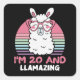 Sticker Carré 20 Years Old Bday Llamazing 20th Birthday Llama