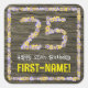 Ce design rustique, amusant, inspiré du jardin d'anniversaire thème autocollant carré a le message "Happy 25th Birthday," avec un nom de destinataire personnalisé. Le grand nombre "25" plus la bordure sont tous deux constitués d'icônes de fleurs. L'arrière - plan est décoré d'un motif imitation bois. Des autocollants floraux comme ceux-ci peuvent être distribués ou utilisés lors d'une fête d'anniversaire organisée pour quelqu'un pour célébrer leur vingt-cinquième anniversaire, ou peut-être utilisés lors de la préparation d'invitations, de cadeaux ou de cadeaux pour un tel événement. [~Z0000654]