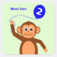 Vous pouvez personnaliser cet autocollant pour l'enfant d'anniversaire en ajoutant son nom. Ce mignon singe a un ballon bleu de 2ème anniversaire qui correspond au nom, le tout sur un arrière - plan d'aqua pâle.