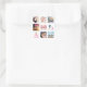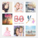 Un autocollant pour une fête d'anniversaire de 30 ans, célébrant sa vie avec un collage de 8 de vos photos. Modèles pour un nom, 30 ans et une date. Date de naissance ou date de la fête. Corail et lettres bordeaux. Fond blanc.