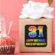 Ce design coloré, gai et amusant autocollant d'anniversaire comporte un grand nombre de "31" et le message "HAPPY BANTHDAY", tous deux avec un dégradé de arc-en-ciel inspiré couleur motif, ainsi qu'un nom jaune audacieux modifiable. L'arrière - plan est noir de couleur. Des autocollants amusants comme celui-ci peuvent être utilisés pour envelopper des cadeaux donnés à quelqu'un pour célébrer son 31e anniversaire, ou peut-être distribués aux invités à une fête d'anniversaire ou à une fête. [~Z0000480]
