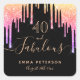 Un autocollant tendance et glamour de 40e anniversaire. Un arrière - plan noir classique décoré avec des gouttes de parties scintillant irrégulière de couleur arc-en-ciel, la peinture goutte à goutte dans l'or violet, rose et rose. Avec le texte : 40 et fabuleux. Personnalisez et ajoutez un nom et une date. Date de naissance ou date de la fête. Texte de couleur dorée. Le mot Fabulous est écrit avec un script de style à la main moderne avec des swashes.