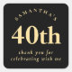 Sticker Carré 40e anniversaire moderne Merci noir et or