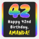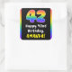 Ce design d'autocollant carré à thème d'anniversaire optimisé et excitant comprend le numéro "42" avec un motif multicolore inspiré du spectre arc-en-ciel, ainsi que le message "Happy 42nd Birthday," et un nom de destinataire personnalisé. Des autocollants comme ceux-ci peuvent être utilisés ou distribués à une fête organisée pour célébrer le 42e anniversaire de quelqu’un, ou peut-être utilisés pour emballer des cadeaux ou préparer des invitations à un tel événement. [~Z0000630]
