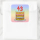Sticker Carré 43rd Birthday: Fun Cake and Candles + Custom Name
